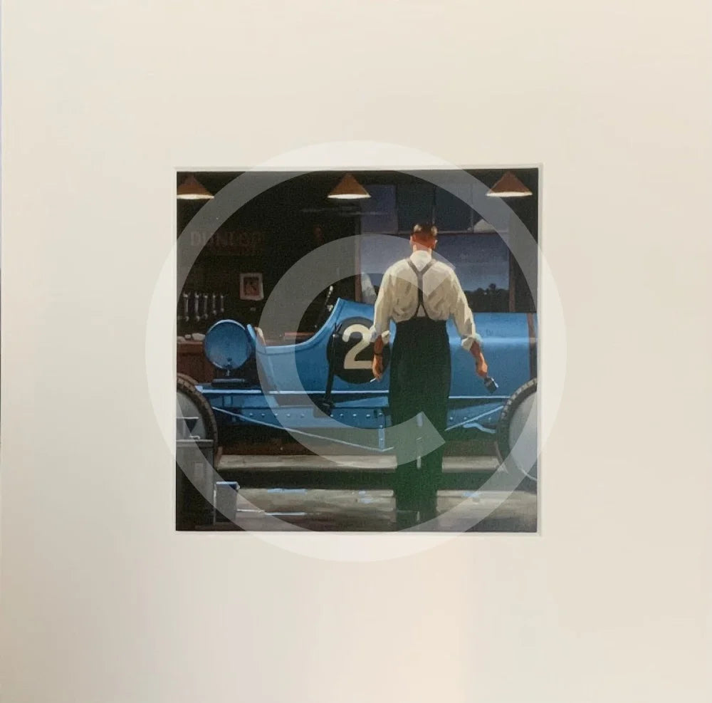 Jack's three Bluebird paintings commemorate Sir Malcolm Campbell's land speed records in the 1920s and 30s. The pictures show the evolution of his Bluebird racing car; in Birth of a Dream, Malcolm Campbell paints the first prototype of the car in its signature blue colour.