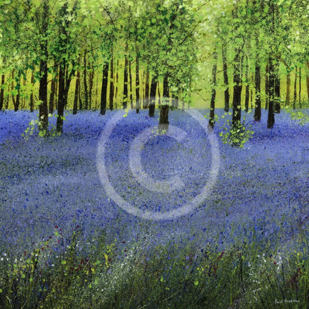 Deep in the woodland on a spring afternoon, a carpet of bluebells covers the ground, creating a purple sea beneath the trees. Peace and serenity exude from the image creating a feeling of joy and calm.