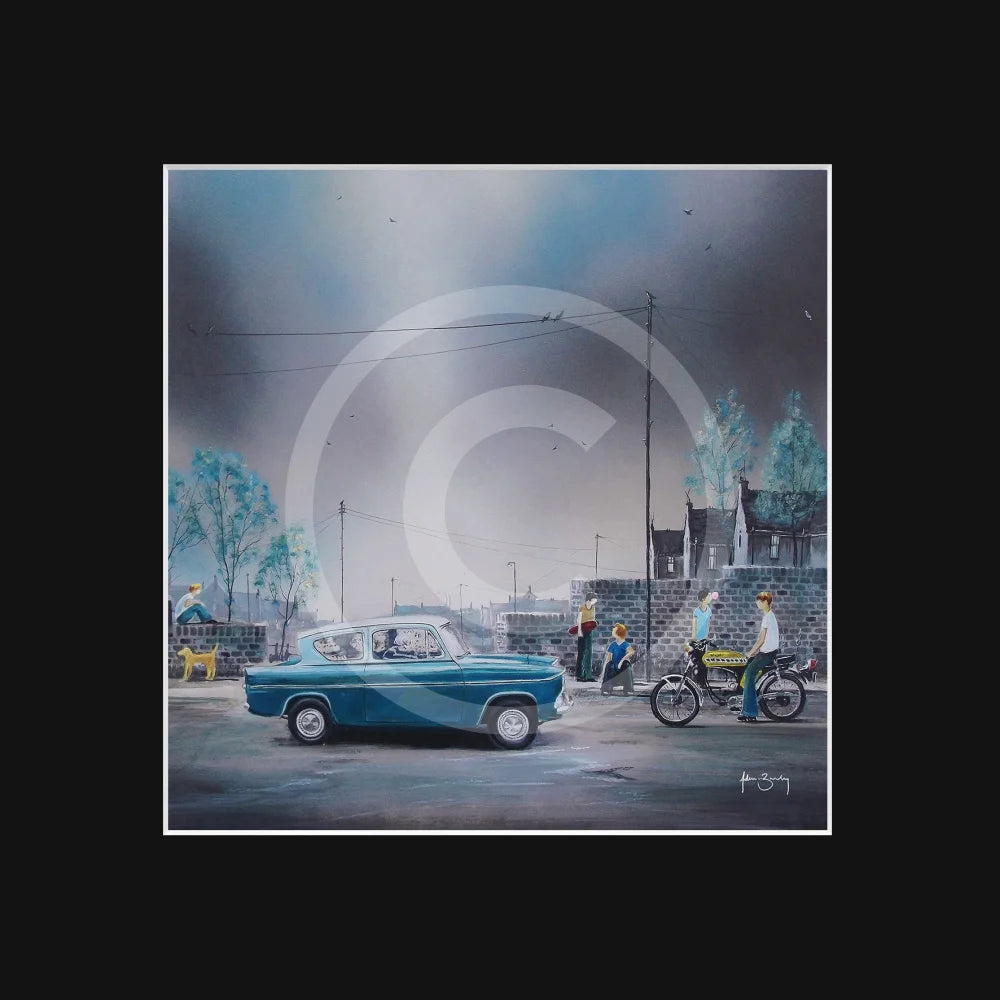 Which was your childhood aspiration? I wonder which the young lad on the wall with his faithful canine companion is admiring? The Ford Anglia car (my dad had one of these - the door kept falling off 🤣), two stroke motorbike or skateboard?The cool dudes are trying to blow enormous bubbles with their gum - what was that pink stuff called - it would stick to your face when the bubble popped! Happy days.