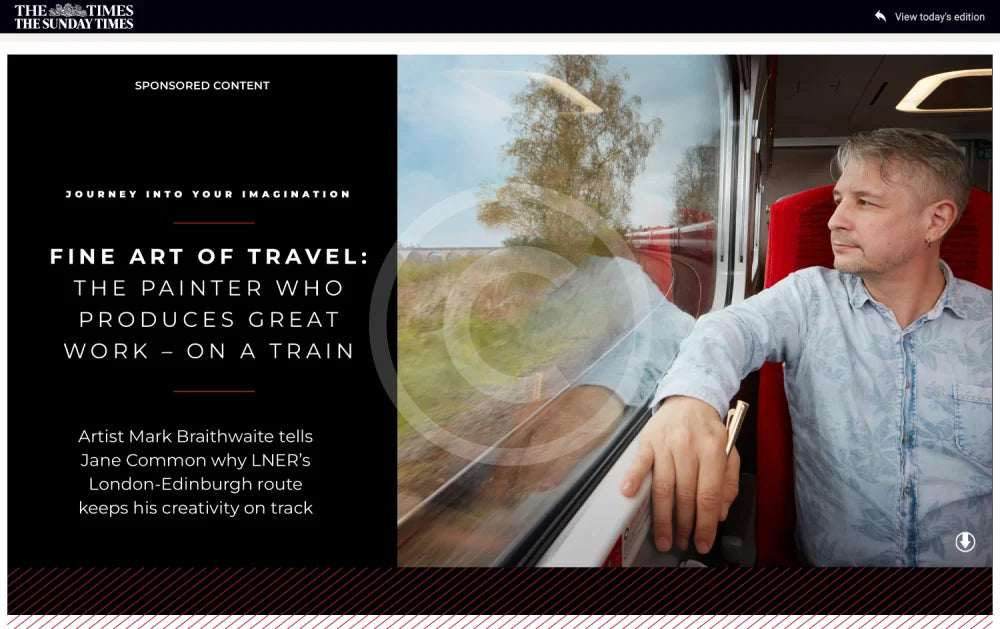 Created for a special project with national newspaper The Sunday Times and railway operator LNER in 2023, Mark has drawn the original in graphite pencil with Faber Castell Polychromos colour detailing.