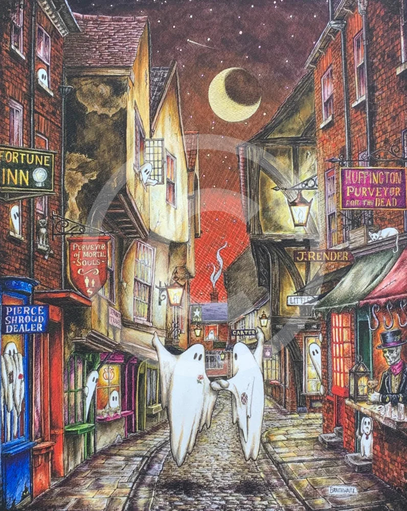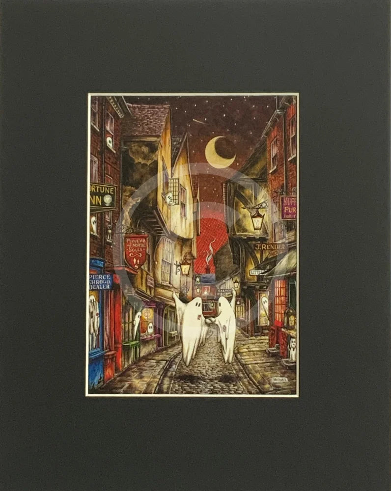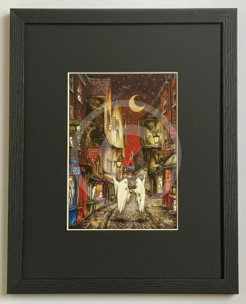 Enchanted Limited Edition - a larger mounted print where the ghosts and many other background details illuminate under black light. The mount is hand signed by the artist and numbered from an edition of 1893 - the year of the Professor's disappearance!