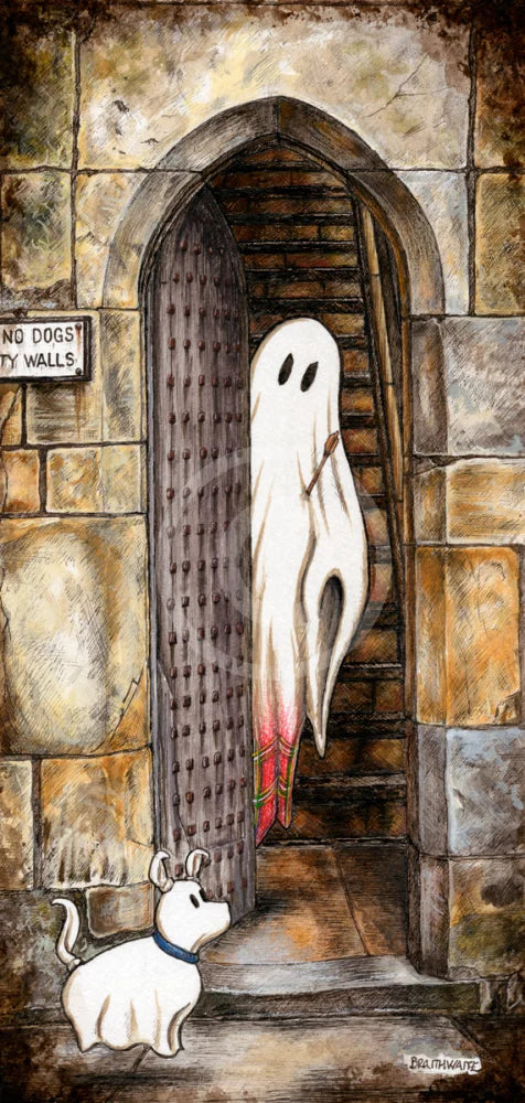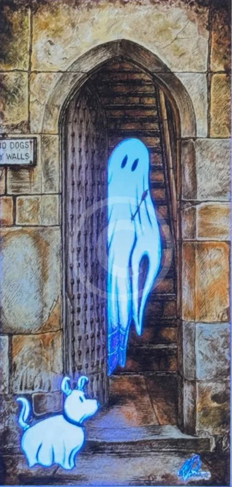 Enchanted Limited Edition - a larger mounted print where the ghosts and many other background details illuminate under black light. The mount is hand signed by the artist and numbered from an edition of 1893 - the year of the Professor's disappearance!