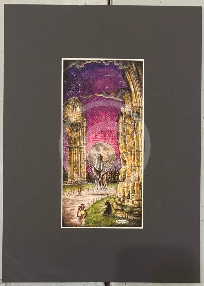 Enchanted Limited Edition - a larger mounted print where the ghosts and many other background details illuminate under black light. The mount is hand signed by the artist and numbered from an edition of 1893 - the year of the Professor's disappearance!