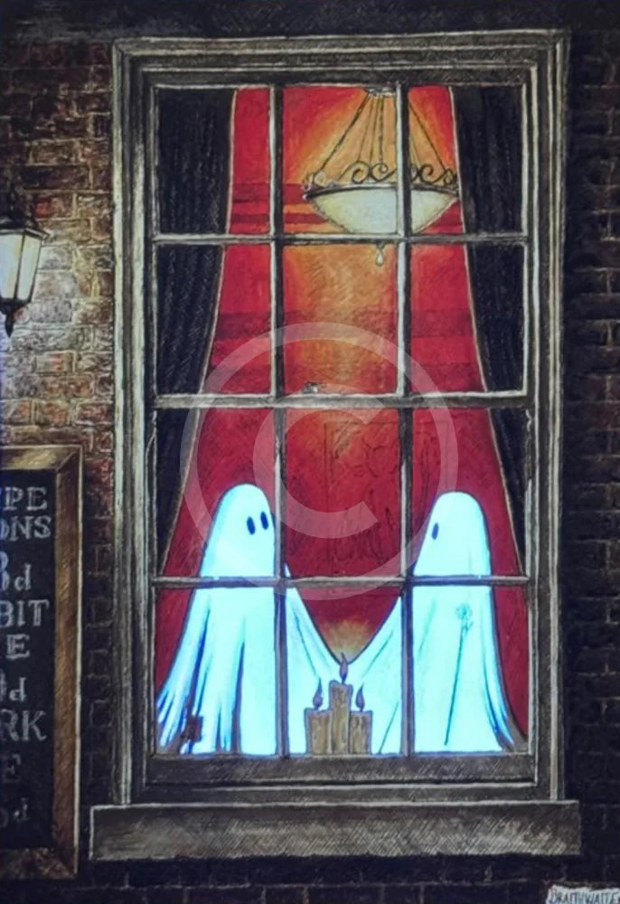 "The friends looked at each other to confirm what they had just witnessed; returning their gaze again to the window they discovered the scene had changed and was replaced by a couple of drunken men playing cribbage. This happened within a blink of an eye and the young men could not explain what they had seen. They made such a commotion in Young’s Hotel, searching for the shrouded figures that they were forcibly ejected and asked not to return.