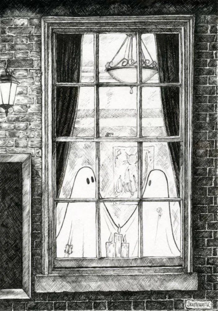 "The friends looked at each other to confirm what they had just witnessed; returning their gaze again to the window they discovered the scene had changed and was replaced by a couple of drunken men playing cribbage. This happened within a blink of an eye and the young men could not explain what they had seen. They made such a commotion in Young’s Hotel, searching for the shrouded figures that they were forcibly ejected and asked not to return.