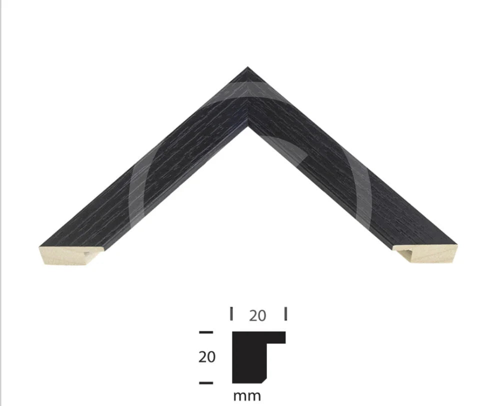 Double mounted; top mount in textured snow white, with a pin line of black underneath.