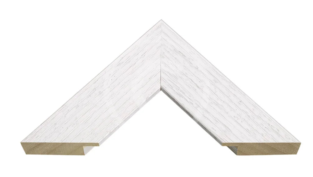 A chunky white painted frame with a fashionable open grain finish.