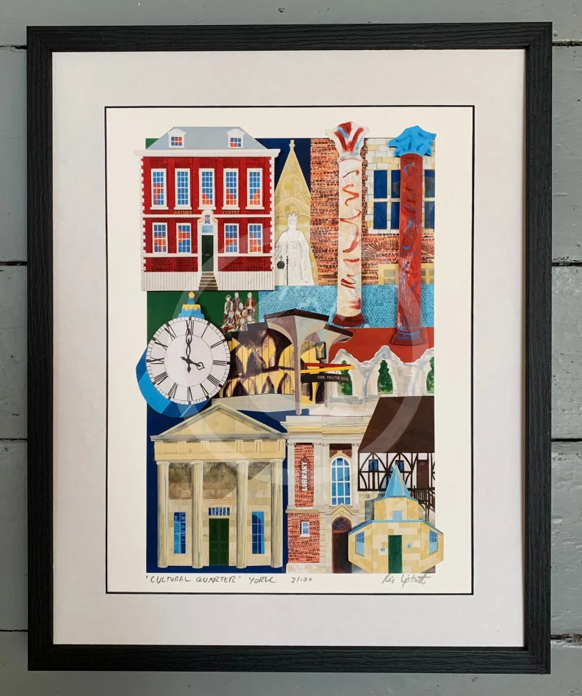 Cultural Quarter; a limited edition giclée print of York's historic cultural quarter, by York illustrator Ric Liptrot.