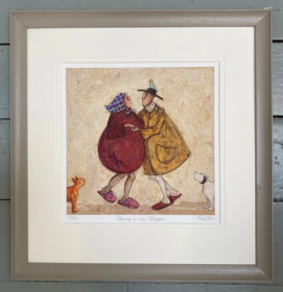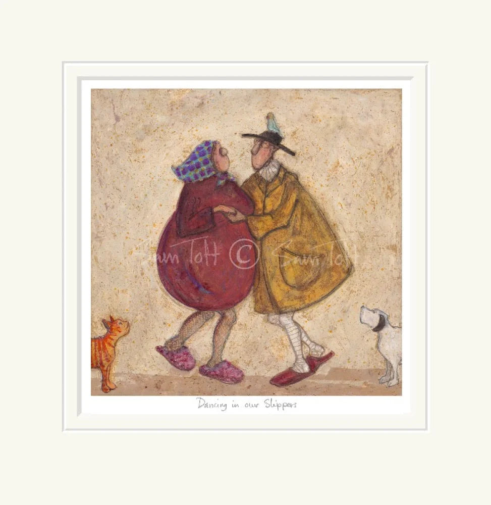 Discover the romantic world of dancing, our favourite couple Ernest and Violet, captured in this LIMITED EDITION print by Sam Toft. They sashay in their slippers, watched by an adorable Doris and Stripes the cat, ready to join in at any moment.
