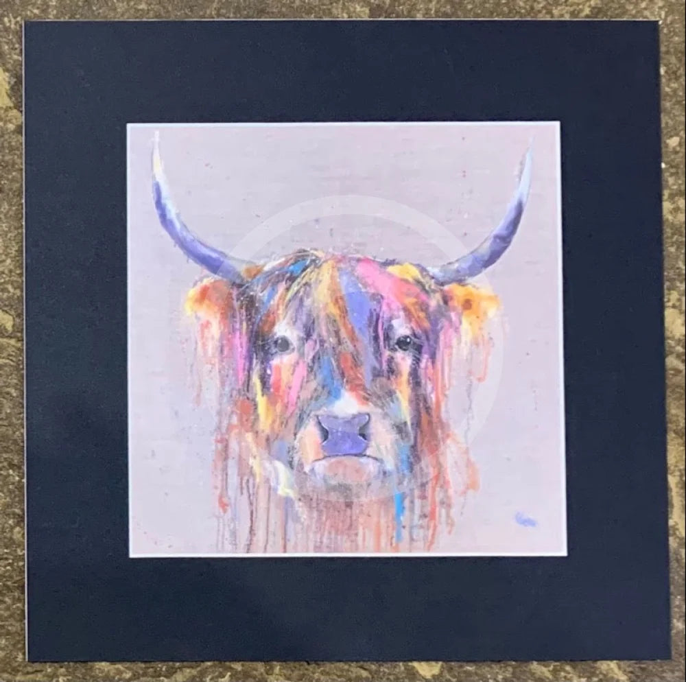 Dottie, a mounted print of a highland cow by Louise Luton, from publisher Artko.