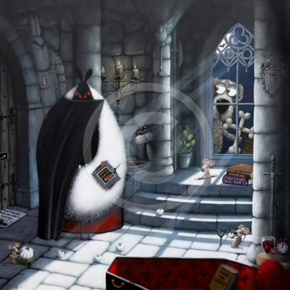Draw-Ewe-La has our favourite fluffy sheep clad in gothic attire, in tribute to Bram Stoker’s Count Dracula. Scary stuff!
