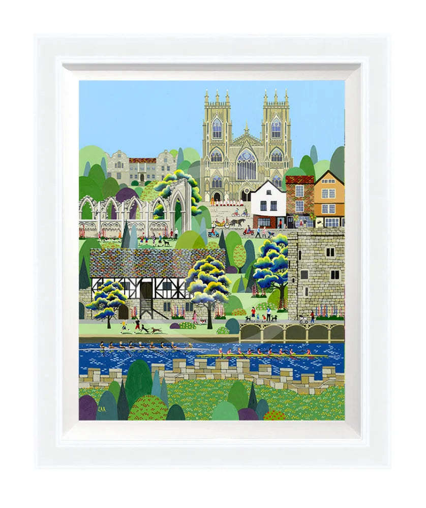 Features include York Minster's West Towers, with choristers and archbishop, The Treasurer's House, The Museum Gardens and Hospitium, Lendal Tower, The City Walls and The River Ouse.