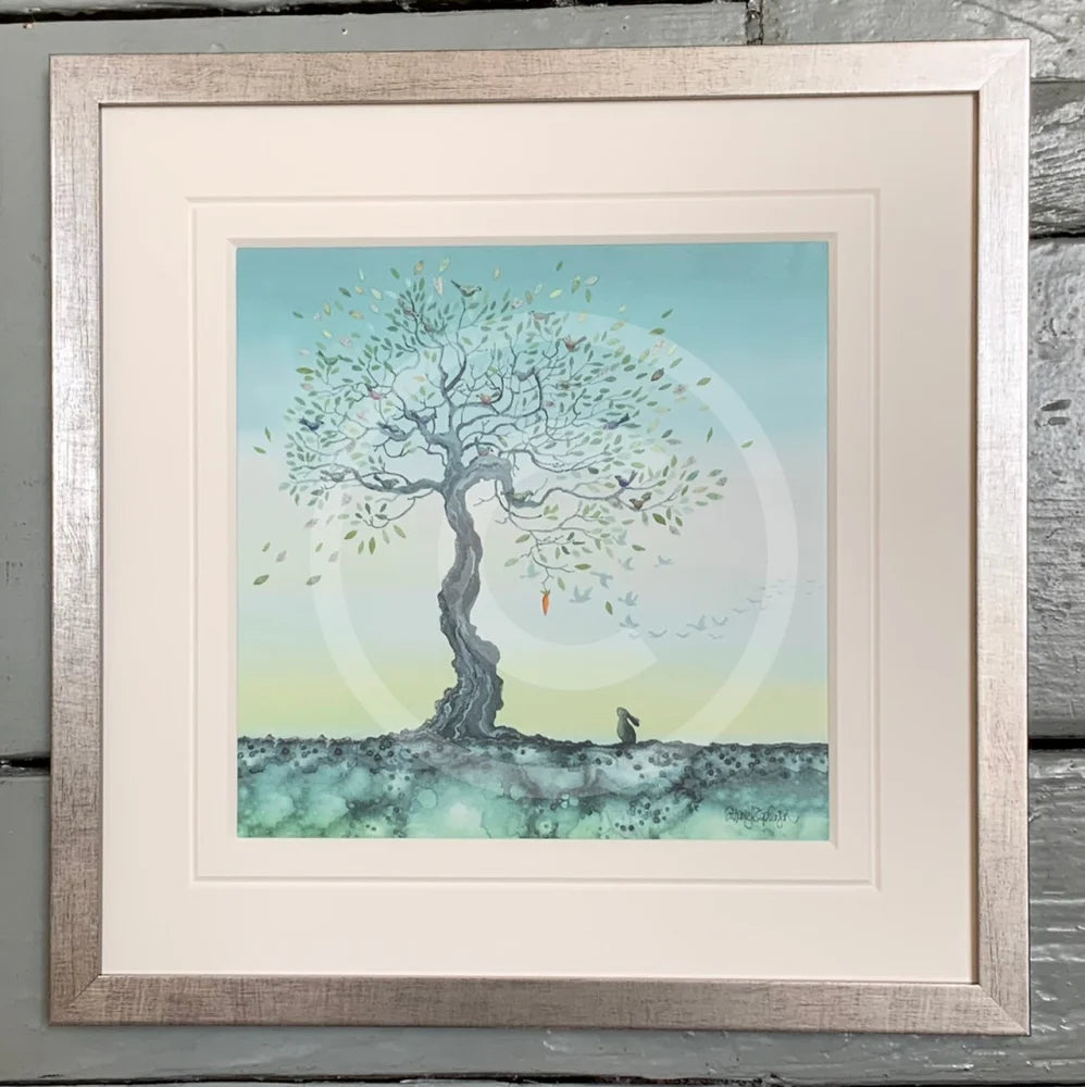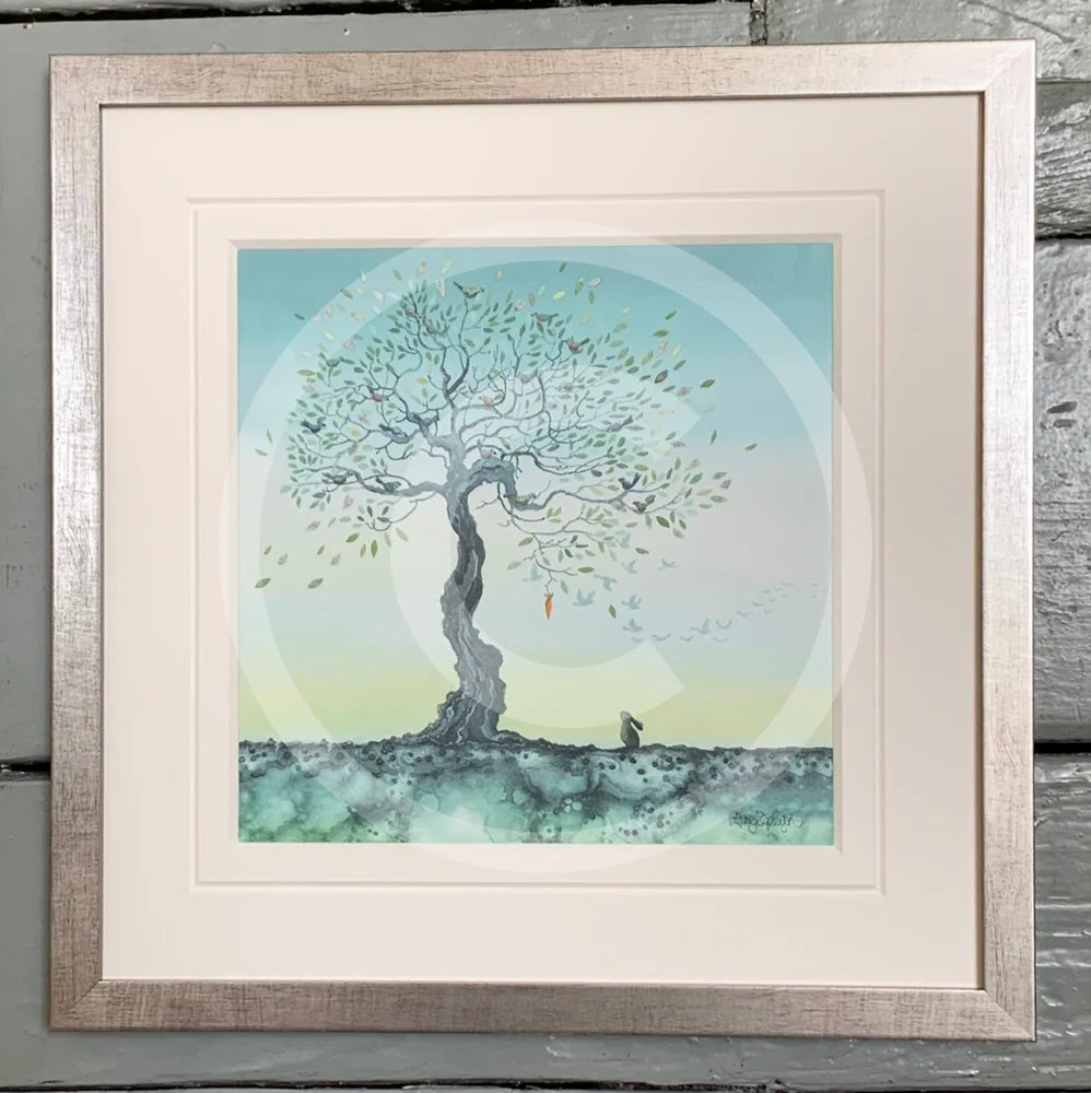 Catherine's signature bunnies have decided that the carrot in the pretty tree can be reached - just - there's always hope!