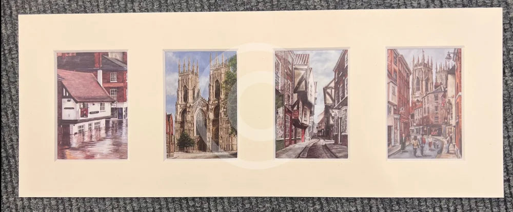 A set of four miniature prints in colour from gallery resident Artist Mark Braithwaite's Classic York collection.