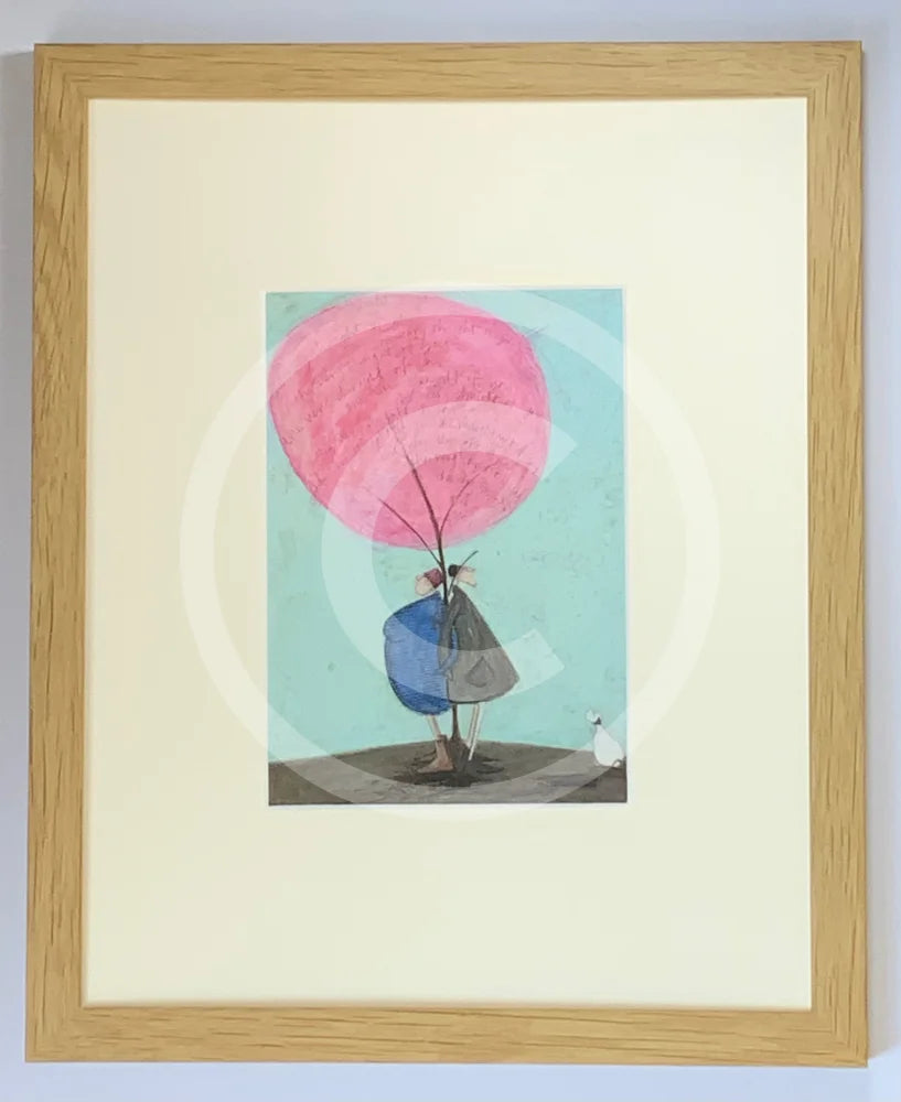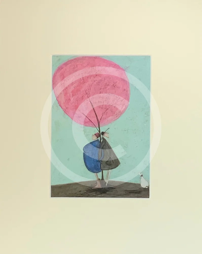 Ernest & Violet stand back to back in a loved up world of their own. The large pink tree above is filled with the words ‘The Very Thought of You’. The romantic perfect gift for Valentine’s Day or an anniversary. Each print from Sam's ‘Meet the Mustards’ Collection is presented in an antique white coloured mount measuring 240x300mm, with an aperture size of approximately 120x170mm.