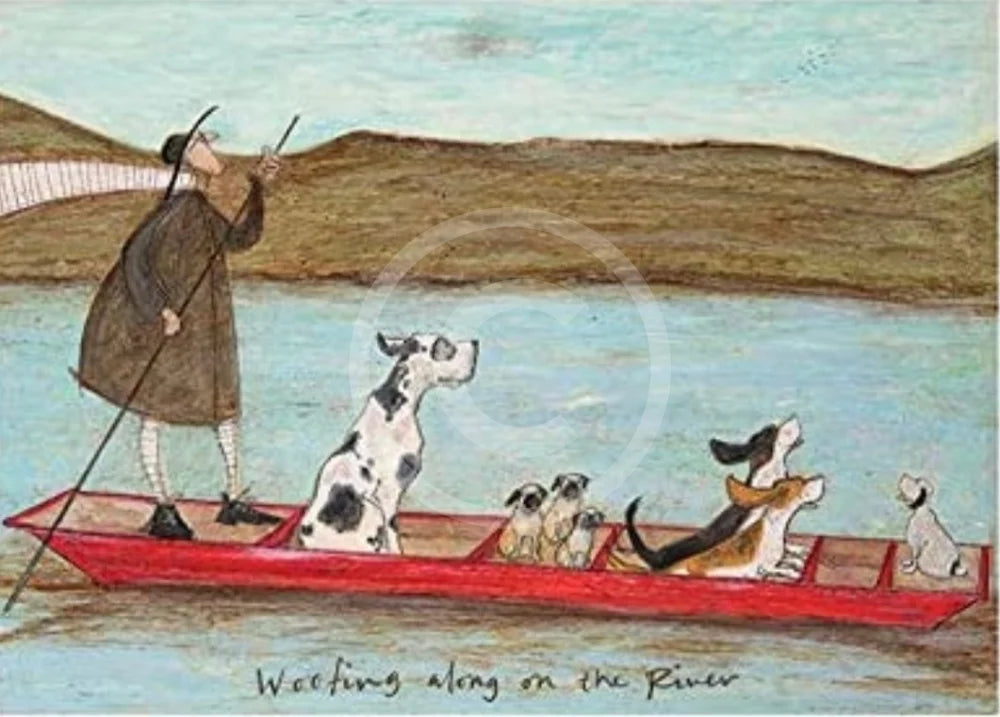 Mr Ernest Hemingway Mustard punts away down the river, taking his doggy friends for a jaunt.