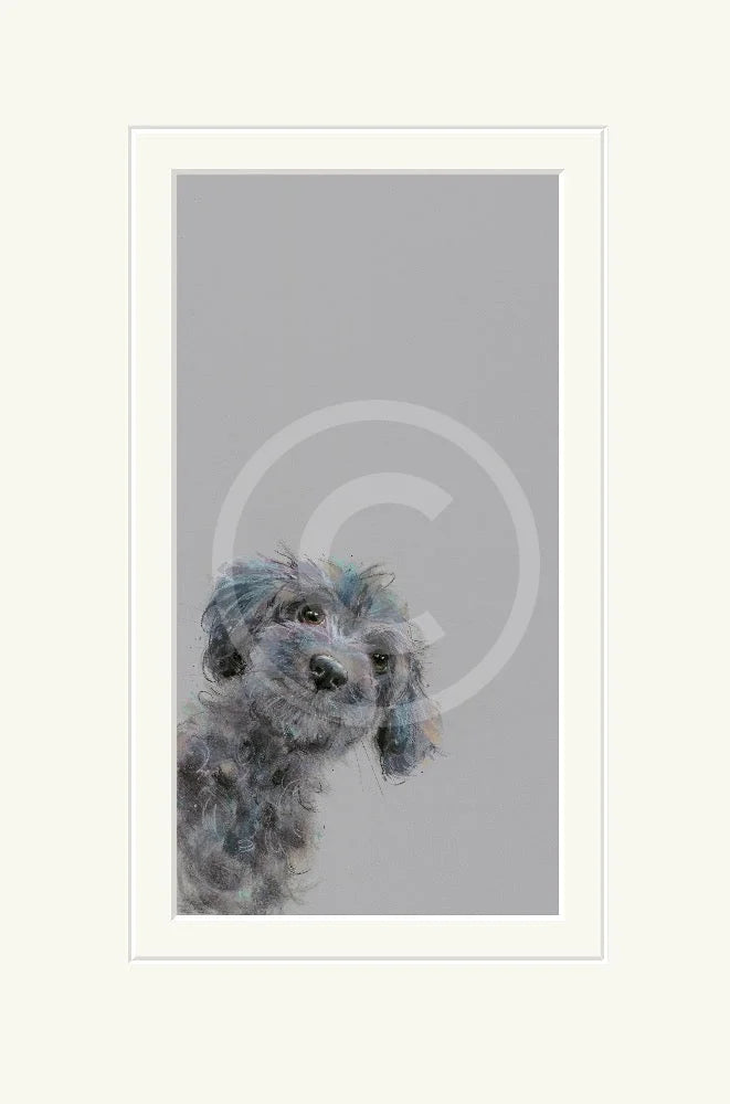 This little chap is full of mischief. What will he get up to next I wonder? Nicky's cute little black dog is set against a pale grey background.
