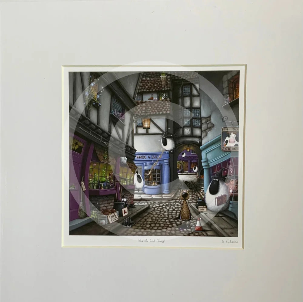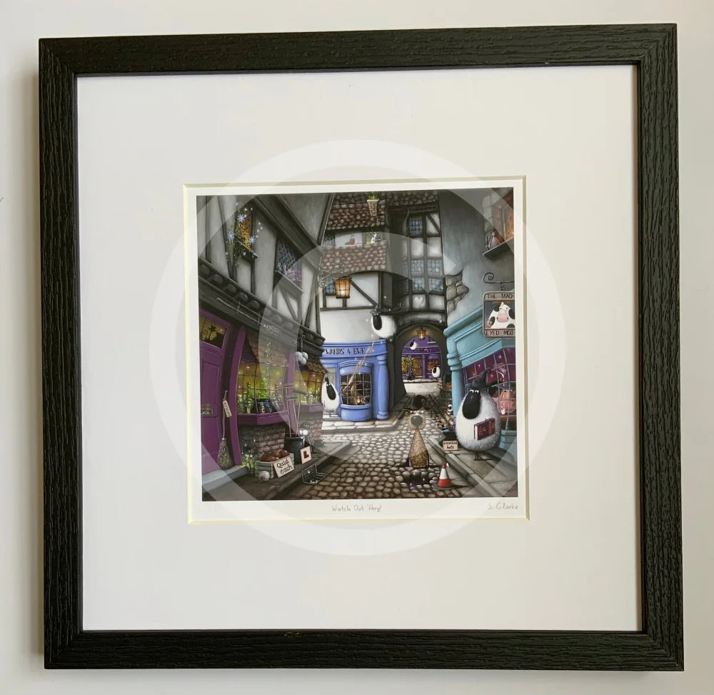 Artist Simon Clarke has produced a quirky range of artwork featuring rounded fluffy sheep and colourful cobbled streets.