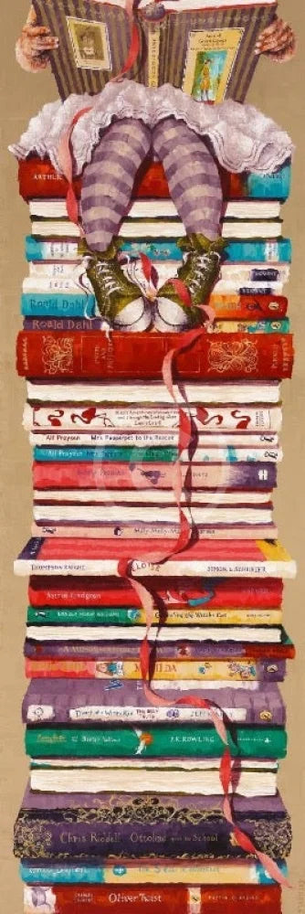 A delightfully nostalgic literary themed children’s book cover art print from Amanda's Girls on Books series. Amanda creates her own artistic interpretation incorporating the spines of a selection of much-loved book titles, enjoyed for decades by both children and young adult readers. No Words Needed includes titles from well-known authors and series such as Roald Dahl, Jane Austen, Lewis Carroll’s, Mrs Pepperpot, Milly Molly Mandy, Diary of a Wimpy Kid, Enid Blyton and Charles Dickens.