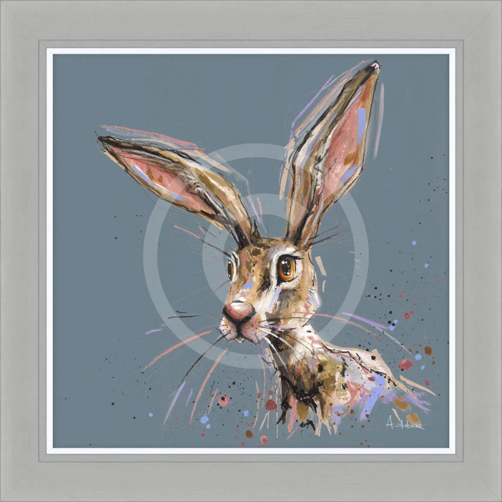 Pink Lady, a framed print of a colourful hare, from Suffolk based wildlife artist Ashley Saunders.