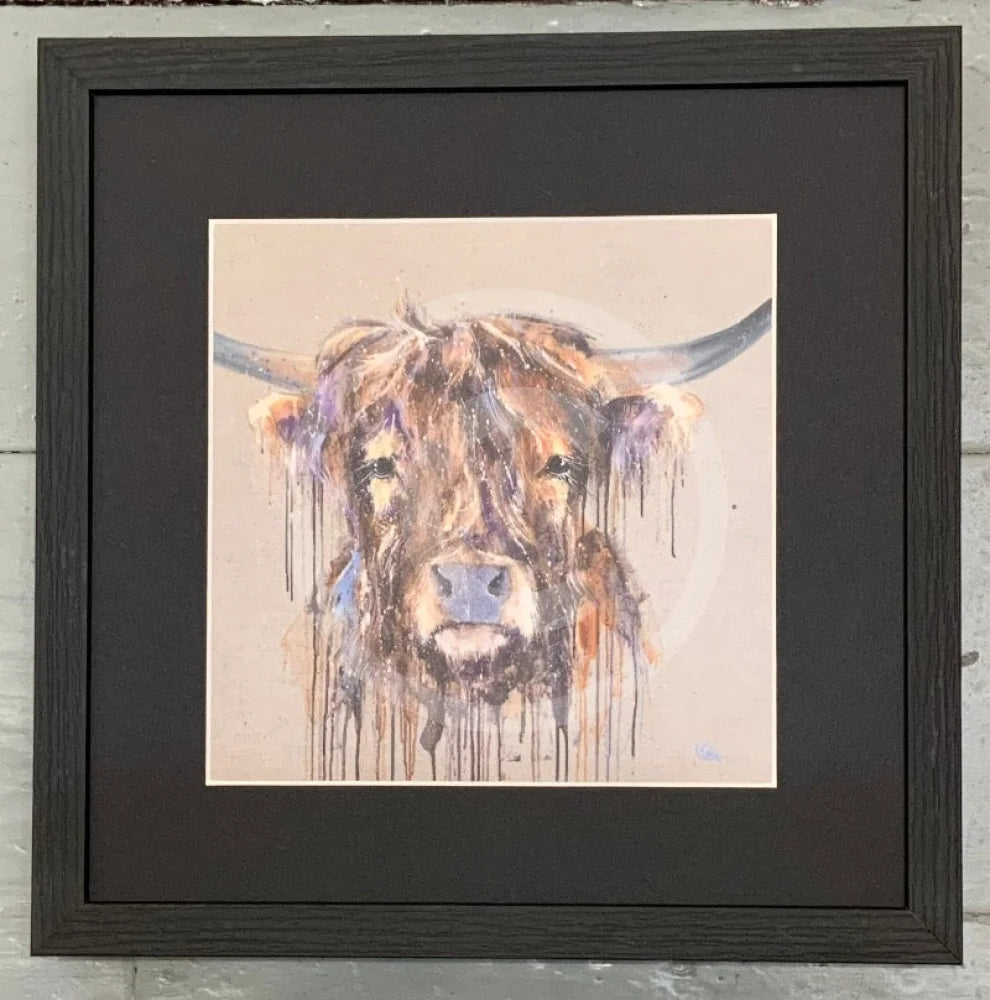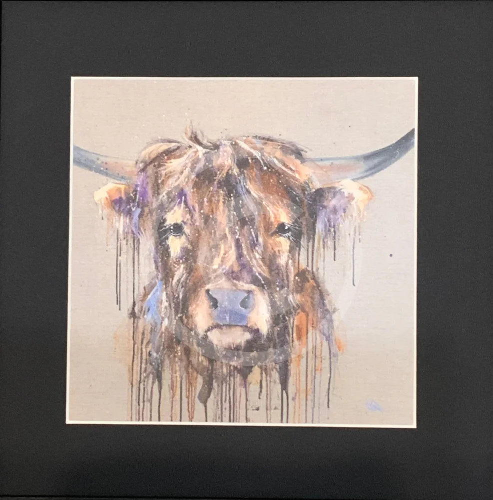 Sid is a striking print of a Highland Cow, from artist Louise Luton, printed on paper and mounted in black.