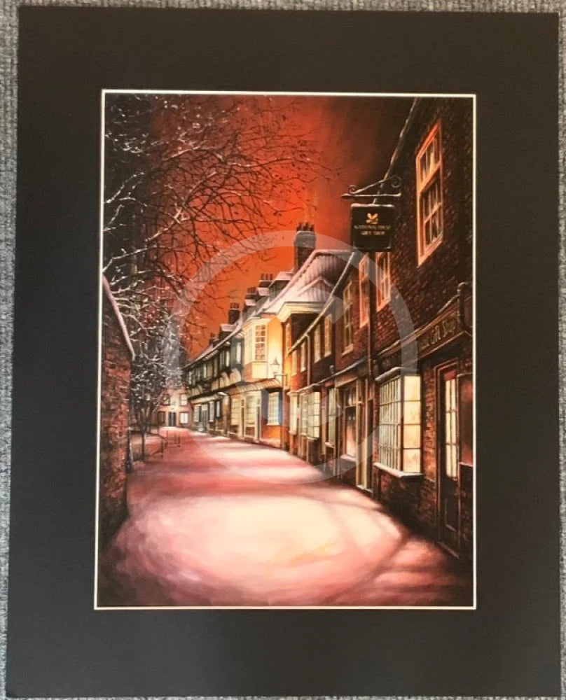 This beautiful view, looking along College Street on a snowy winter’s night, shows the distinctive black and white timber-framed building at its most atmospheric. Street lamps cast light and shadows onto the path where not a single footprint has disturbed the freshly-fallen snow.