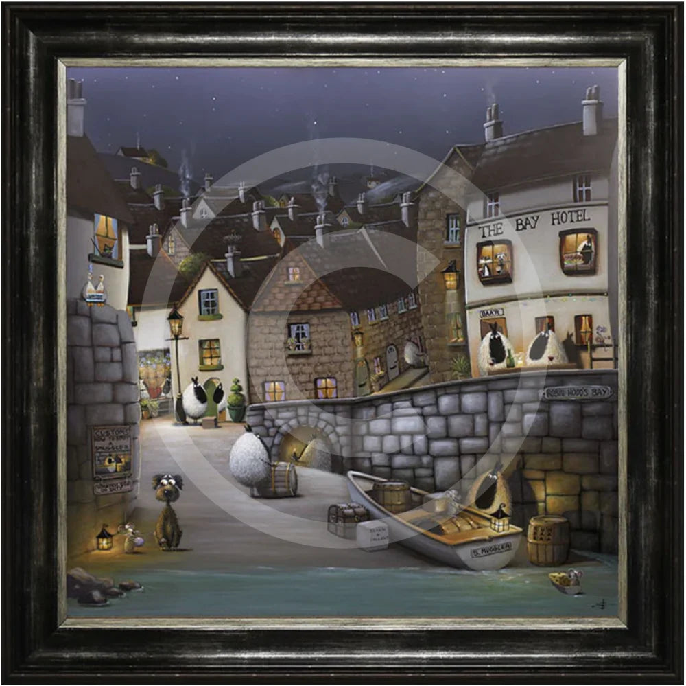 Smugglers B'aa has an image size of 55x55cm framed, with an external frame size of 67x67cm, and is available as 25x25cm (mini) or 50x50cm on canvas. All sizes are approximate.