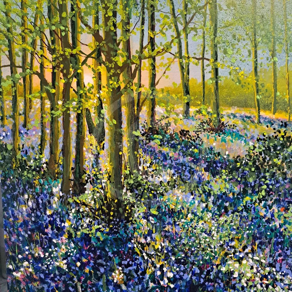 Deep in the woodland on a spring afternoon, a carpet of wild flowers covers the ground, creating a vibrant spring sea beneath the trees. Peace and serenity exude from the image creating a feeling of joy and calm.