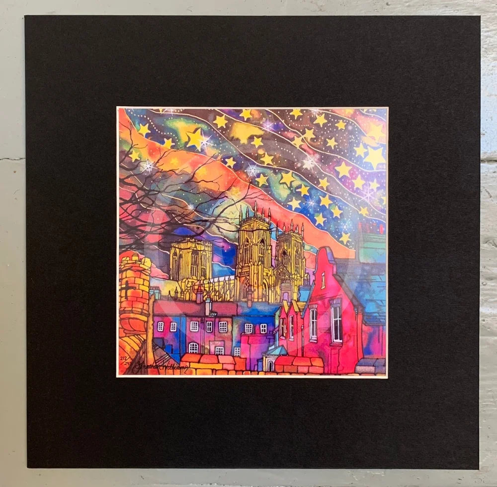 A stunning view of a starlit York Minster from the city walls, in Jonathan's distinctive style.