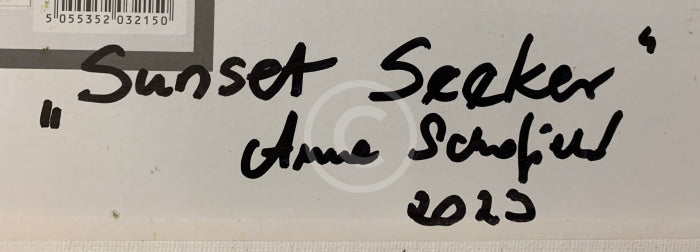 The canvas board measures 8x20”, and is framed as shown. Anna has titled the painting on the reverse.