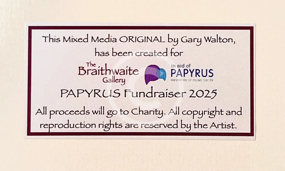 Both Gary and ourselves at the Braithwaite Gallery want to show our support and admiration for PAPYRUS and everything they do for young people in need.