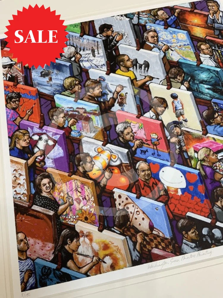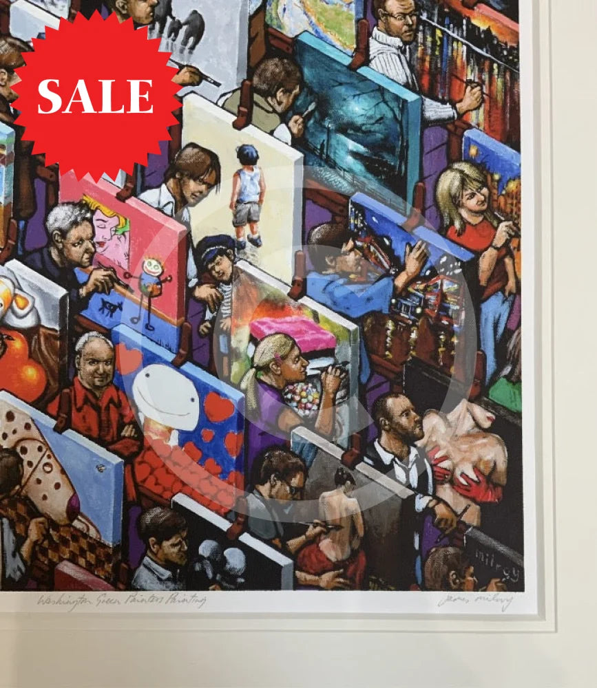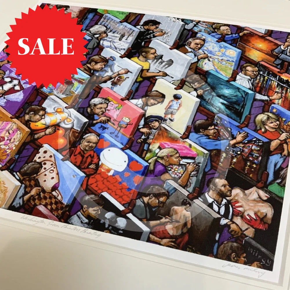 Capture the joy of creation with this limited edition print of James Milroy's "Washington Green Painters"! The vibrant colours and unique perspectives let you dive into the artist's world and feel the energy of the painters. The print is presented in a double textured white mount.