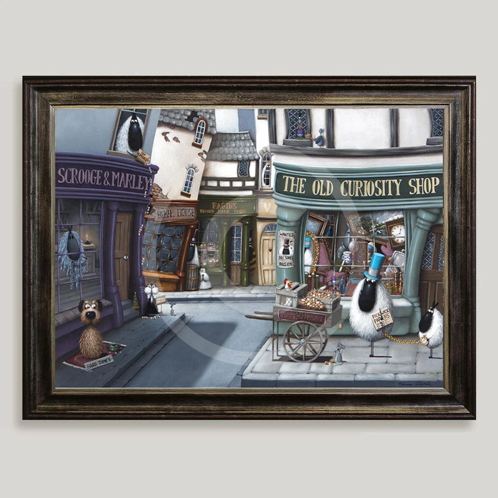 What the Dickens has an image size of 50x70cm and external frame size of 62x82cm. All sizes are approximate.