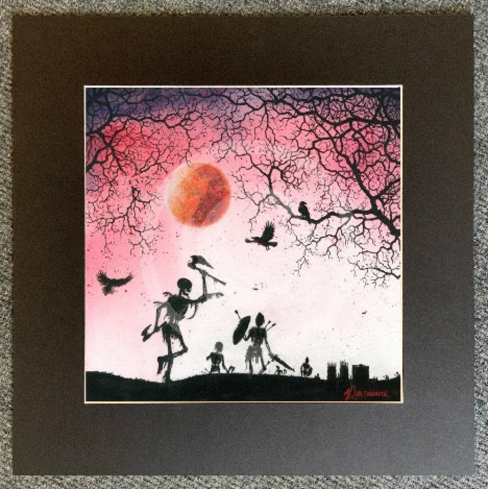 Blood Reign, the return of Ragnar Lodbrok, infamous Viking, who according to the sagas, was killed by his enemies in a pit of vipers. Viking skeletons - and a snake!- rise from beyond the grave, whilst crows circle overhead, in a sky raining blood.